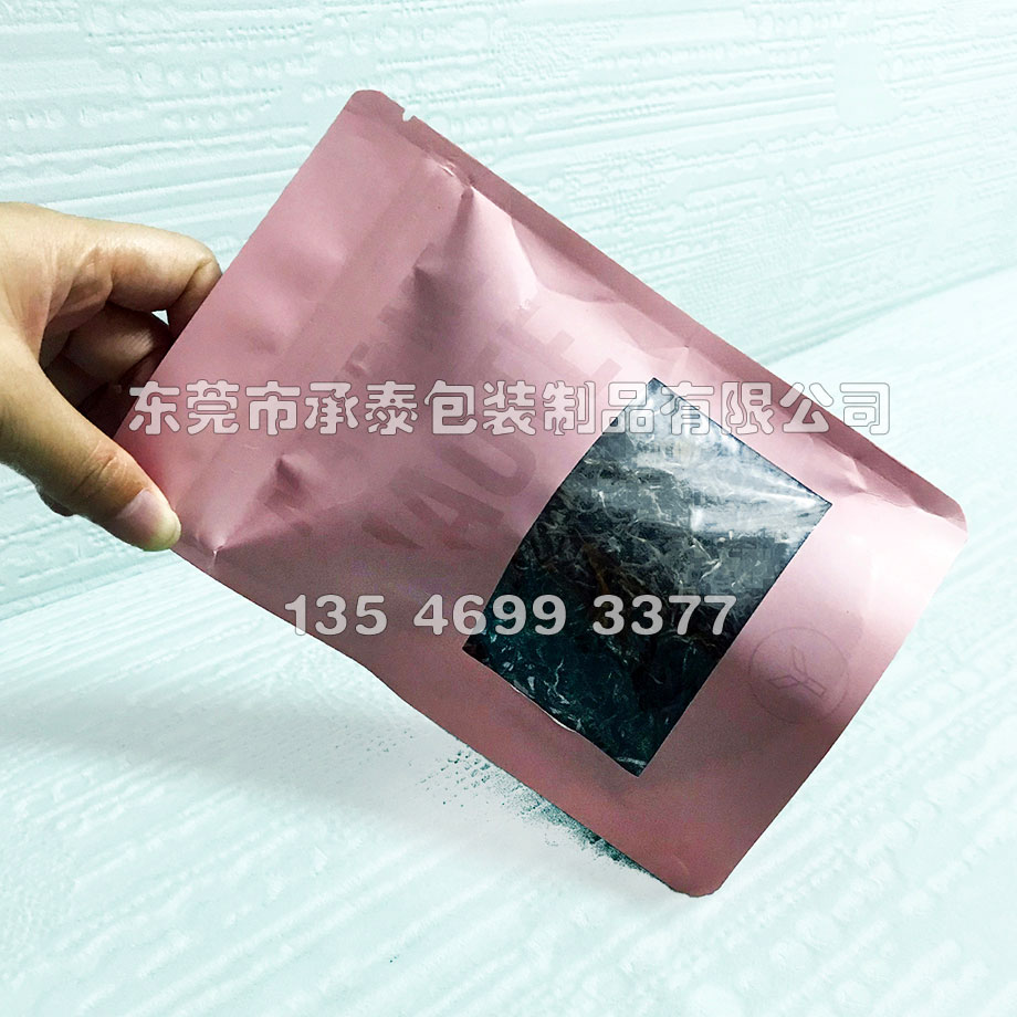 • UV啞光粉色牛皮紙開窗自立拉鏈袋