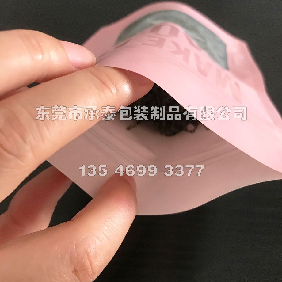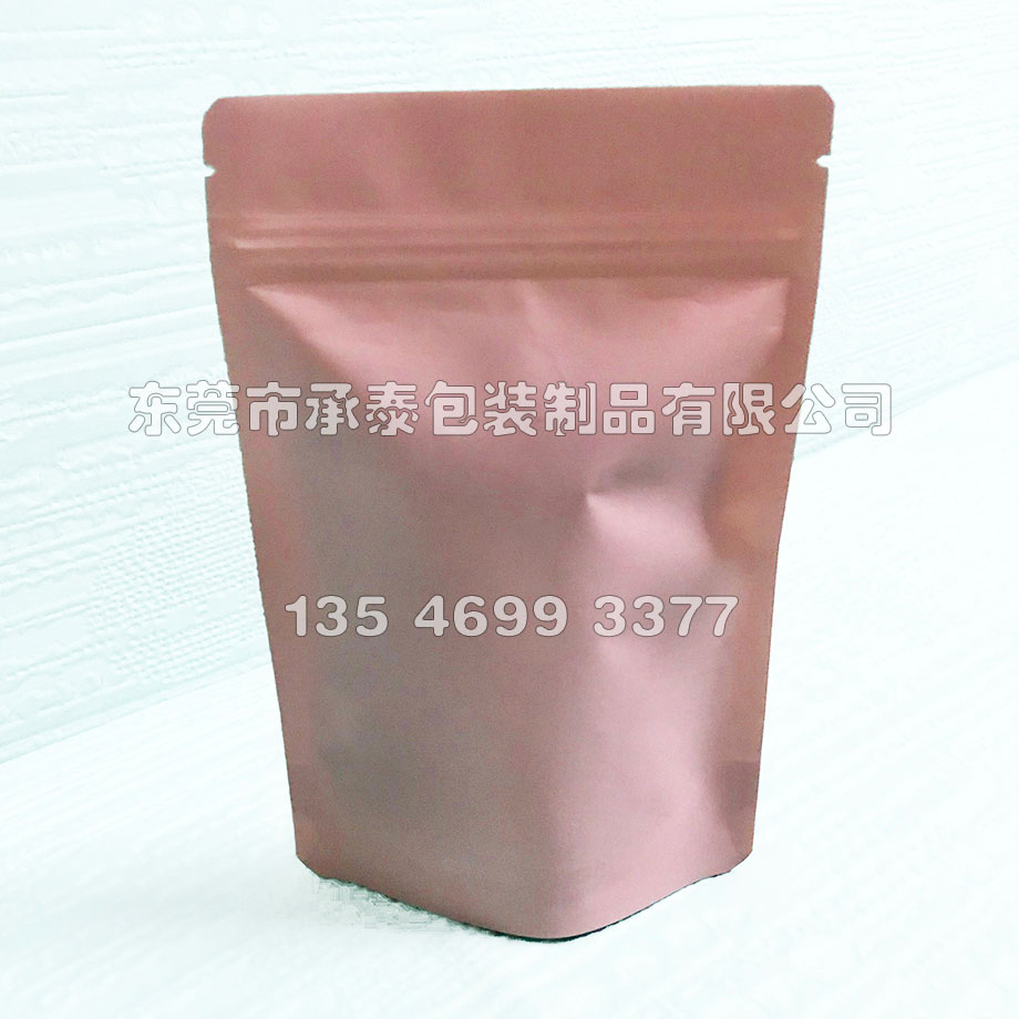 UV啞光粉色牛皮紙開窗自立拉鏈袋